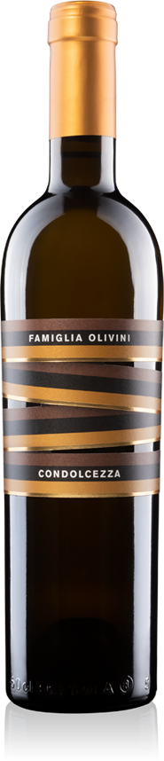 植物で乾燥させたブドウから得て、甘いワイン。塾した果実、バニラの豊かな香りがコン・ドルチェッザの甘みを表現する(「ドルチェ」はイタリア語で「甘い」という意味)。エレガントなワインでアロマチックな余韻が長く楽しめる。